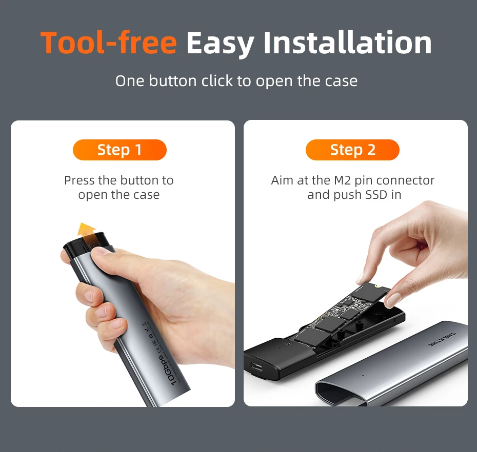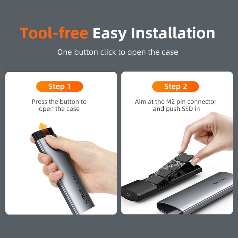 100% tool-free for quick and easy installation of your M.2 NMVe SSD or M.2 SATA SSD. plug-and-play, no drivers required. the fastener design of the USB 3.1 NMVe PCIE M 2 SSD enclosure ensures stable and fast data transfer.