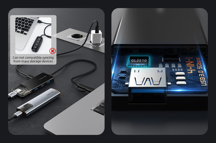 CABLETIME 4-in-1 USB hub is designed to be compact and portable, ensuring you have a hub to rely on, wherever you go. Enhance your mobile workspace without the bulk—efficiency, and convenience can indeed go hand in hand!