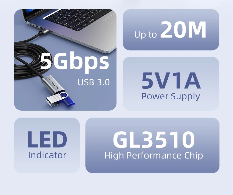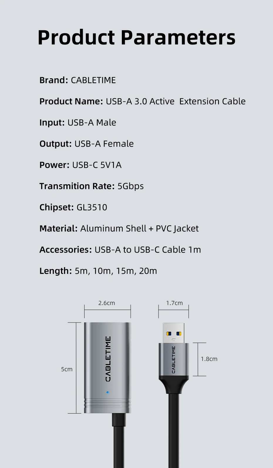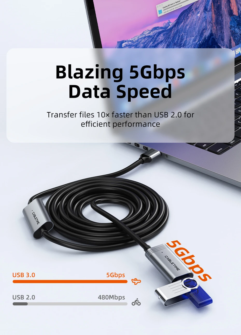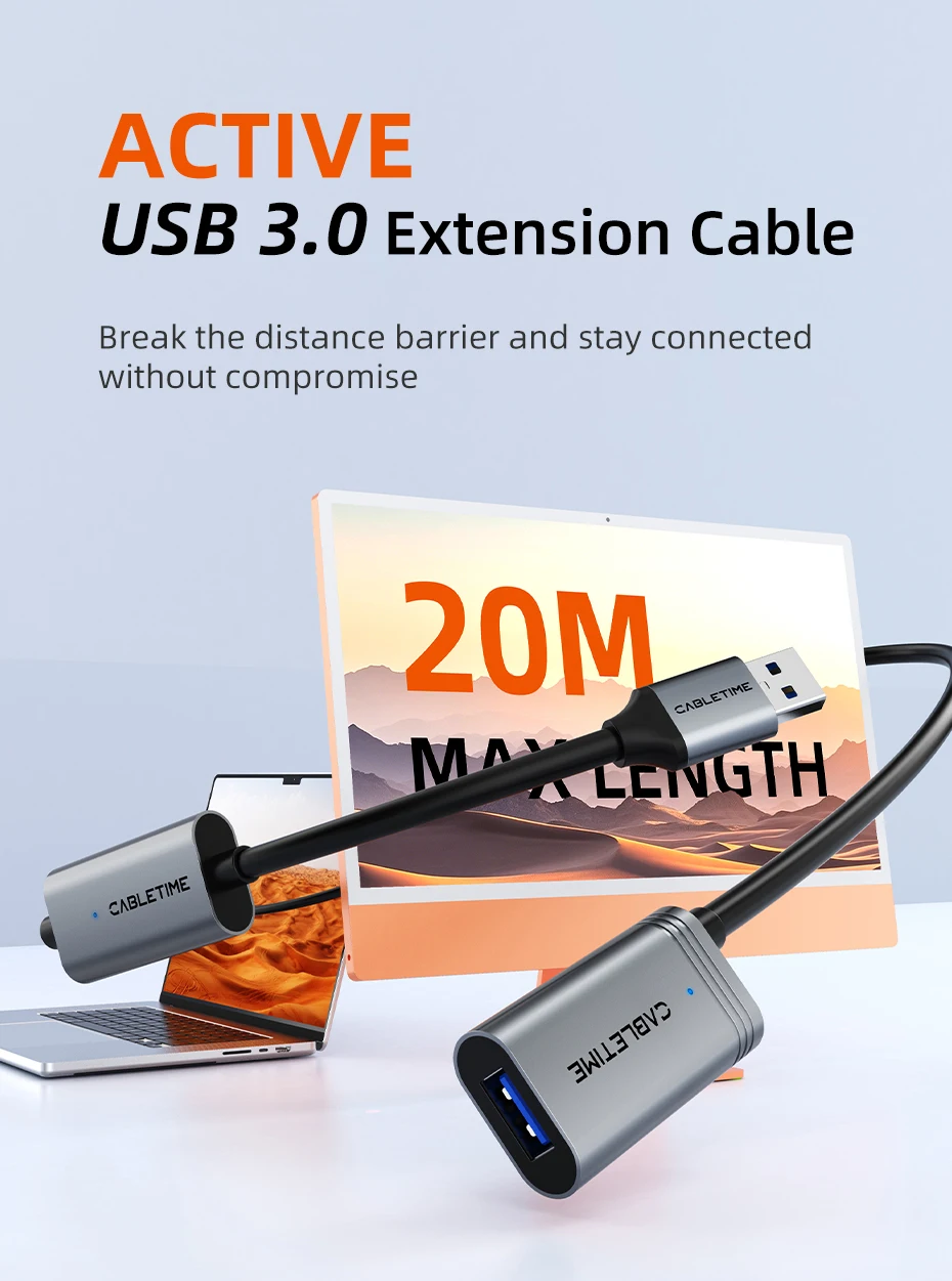 CABLETIME CA18 USB A 3.0 Male to Female Active Extension Cable
