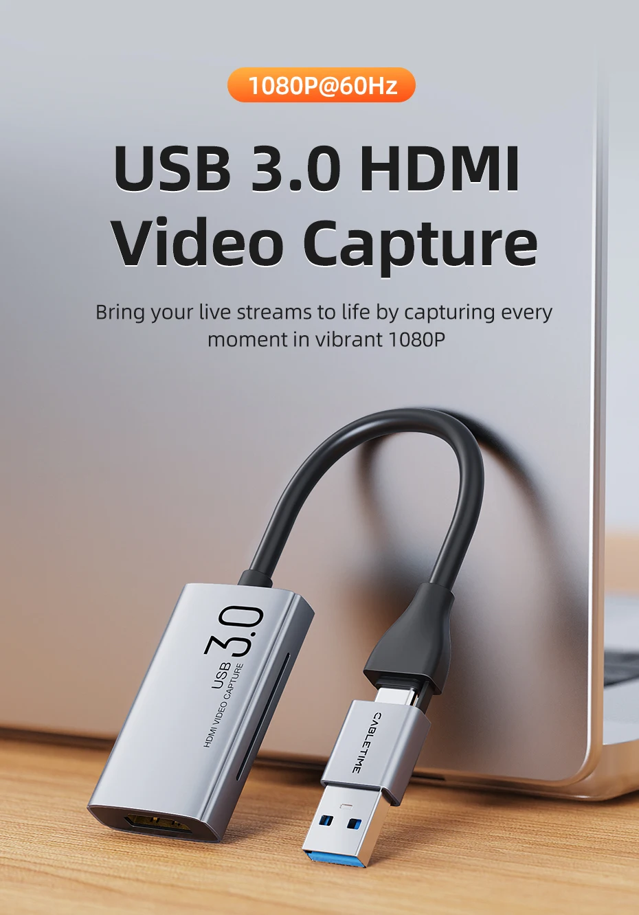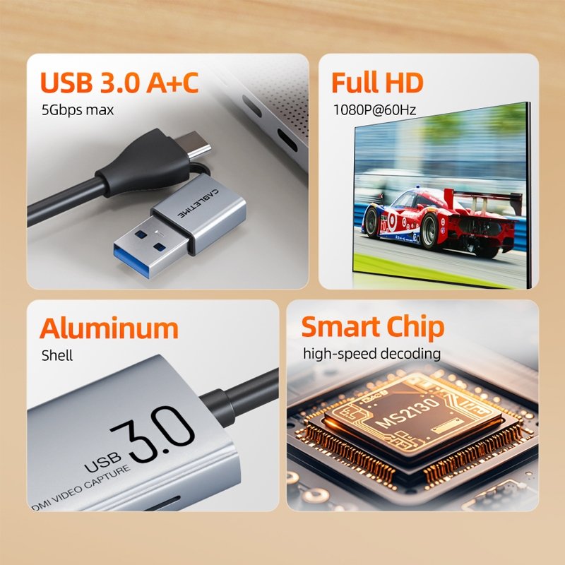 CABLETIME CB65G USB C+A to HDMI Video Capture Card