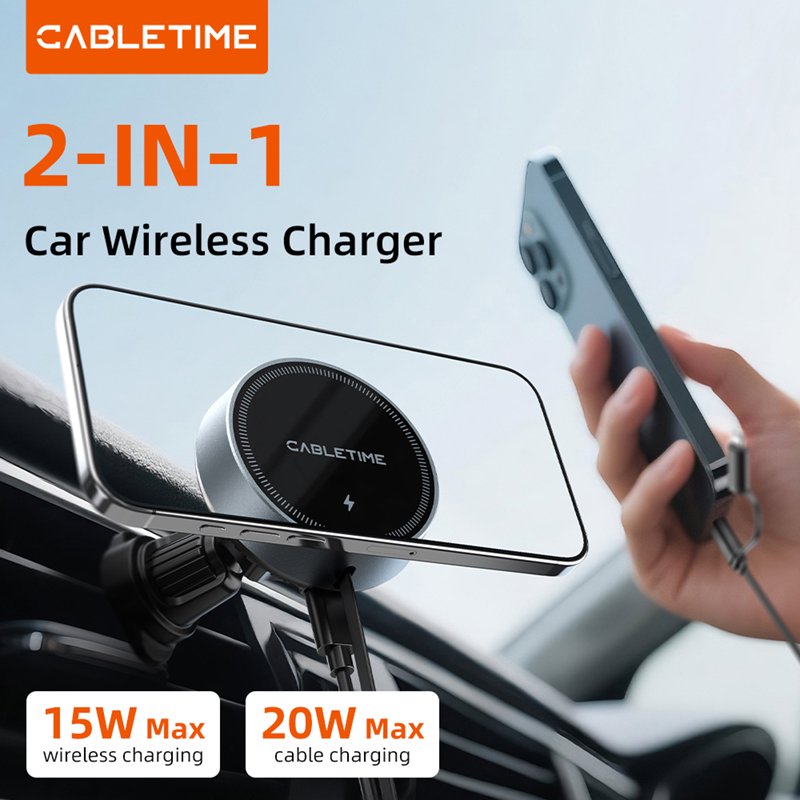CABLETIME CE13B Wireless Car Charger With PD 20W Retractable Cable