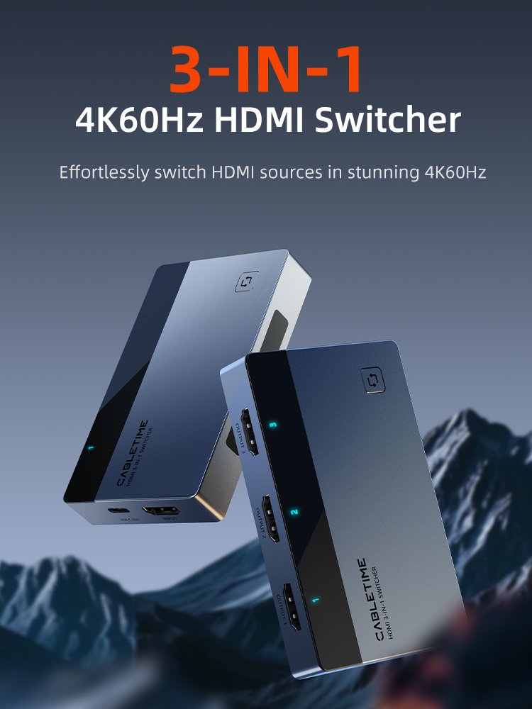 CABLETIME CP35G 2-in-1 HDMI 2.0 4K 60Hz Uni-Direction Switcher