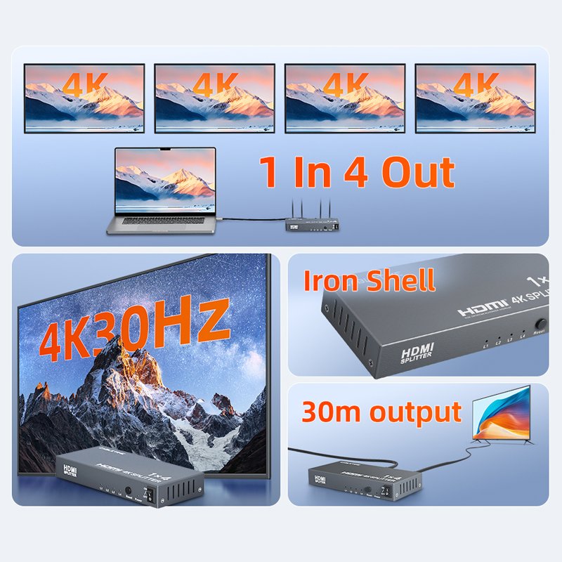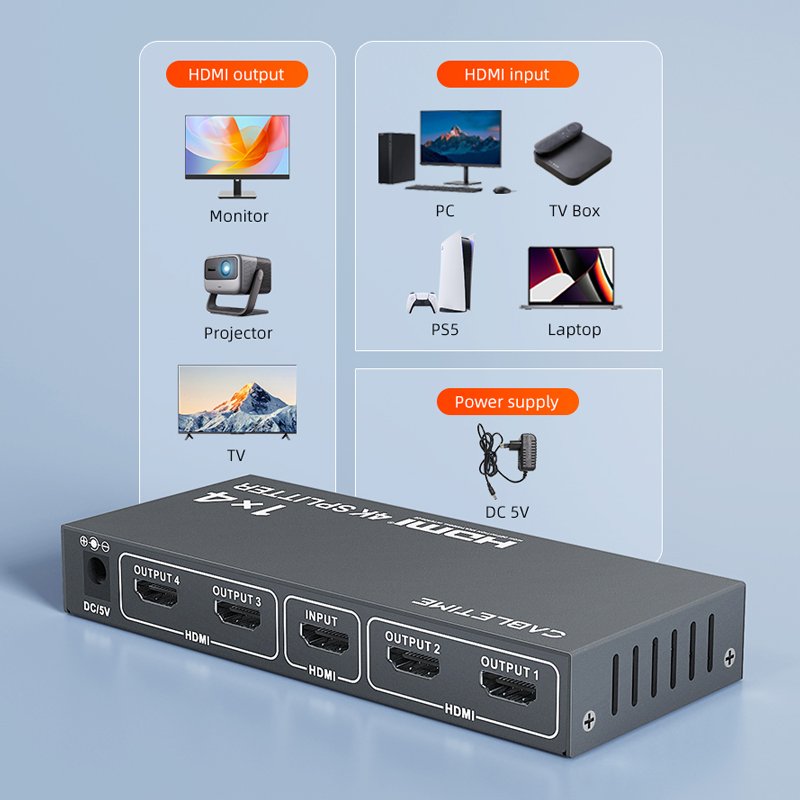 CABLETIME CP38G 1×4 HDMI 4K 30Hz Multiple Monitors Splitter